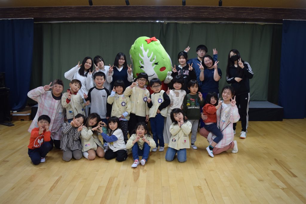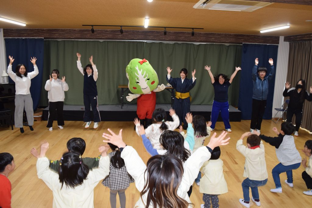 令和8年1月14日(水)3年次生課題研究「エリアビジネスプロジェクト」のメンバーが、今年度最後の幼稚園訪問に行ってきました。KidsBASEの園児たちもとても元気が良く、紙芝居も真剣に聞いてくれました。はくちゃんダンスも上手に踊ることができ、楽しい時間を過ごすことができました。