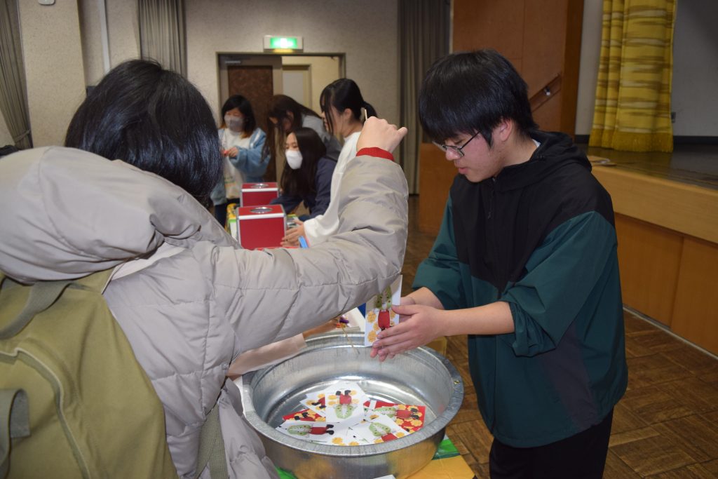 令和8年2月14日(土)中川区役所講堂にて、はくちゃん祭り抽選会が開催されました。中川区内の飲食店で、昨年より行われているスタンプラリーの景品配付など、3年次生課題研究「エリアビジネスプロジェクト」のメンバーが活躍しました。菓子まき大会なども行い、とても盛り上がり地域の方々と笑顔で交流できました。
